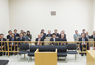 2月16日、第3例会終了後に札幌地方裁判所苫小牧支部様へ職場訪問を実施いたしました。裁判所内の見学はおそらく大半の方がはじめてだったことと思います。まずは法廷に入場して傍聴人席へ座り、判事から各種裁判における流れや配置等を教えていただき、皆いい緊張感を保ちながら話に耳を傾けました。その後、別室へ移動し判事から卓話を頂戴いたしました。裁判官のキャリアや仕事の内容、やりがいや私生活まで幅広く解説をしていただき大変勉強になりました。