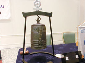 5月に開催された創立60周年記念事業として、藤澤レオ氏に依頼していた当クラブの「半鐘」が完成し、10月6日の例会にて会員に披露されました。