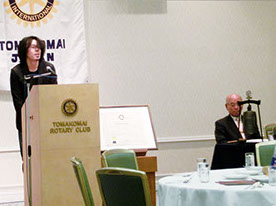 函館市民会館を会場として開催された地区大会は、2510 地区から大勢のロータリアンが集まり、國立ガバナーの点鐘、ロータリーソングとスムーズに大会は進行し、昼食より会場を変えて、記念講演へプログラムは進行して行きました。
