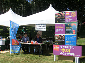 多くの市民が訪れた会場で、ポリオ撲滅募金も実施され、ロータリーの活動を多くの方々に知って頂く機会となる広報活動としても行われ、実施した募金をロータリー財団へ送金しました。