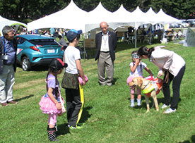 写真でも紹介してますが、先月の卓話に続き盲導犬について理解を深めて頂くために、前田青少年奉仕委員長が準備を進めていた「盲導犬体験」も実施され、当日会場に訪れた来場者に体験していただき、参加して頂いた子ども達へは記念として心ばかりのお菓子を配布しました。