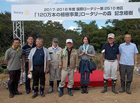 國立ガバナーの挨拶の後、植樹方法のレクチャーを受け、1 人5 本のノルマに対して、当クラブ会員はそれ以上を植樹し、ロータリーの活動を周知する機会となりました。